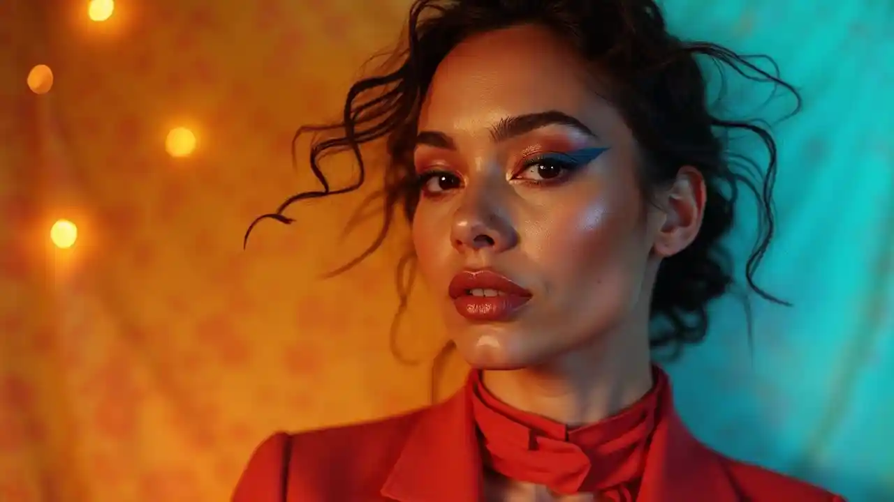 Portrait of bronwyn jackson, bright and saturated colors, elegant, highly detailed, vogue, fashion magazine, sharp focus, bright expressive makeup, dramatic lighting, depth of field, incredibly high detailed, blurred background
