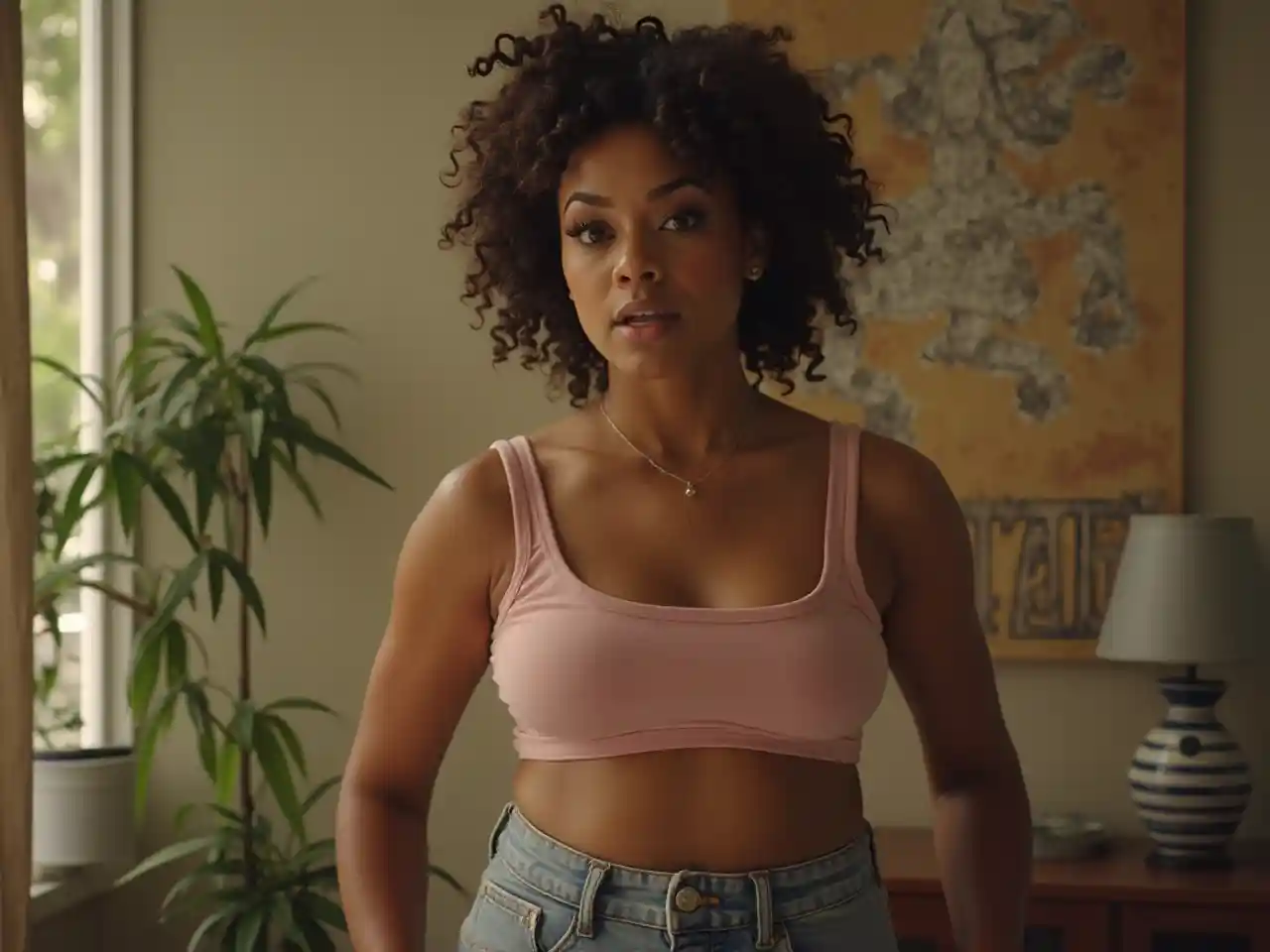 Fat zendaya coleman, in a Crop top where her belly has a lot of underbelly fat. She has a big belly Button. Her belly hangs over her waistband