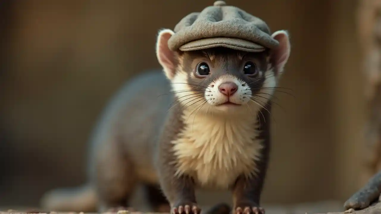 Charming Anthropomorphic Ferret in Newsboy Cap