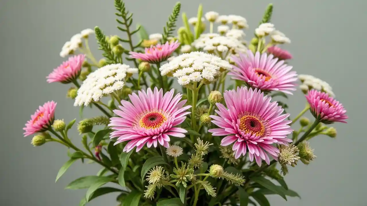 Pink Yarrow and White Queen Anne’s Lace Bouquet
