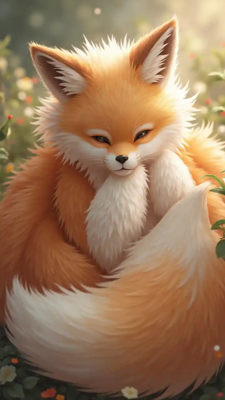 A Hyper-Realistic Portrait of a Fluffy Nine-Tailed Fox Girl