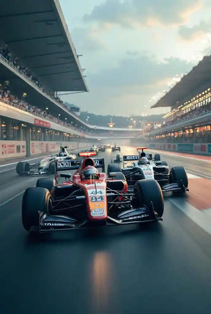 BraydenHigh-speed Formula 4 race cars on a professional racing circuit, dynamic motion blur effect, leading car with number 84 in sharp focus, futuristic aerodynamic d