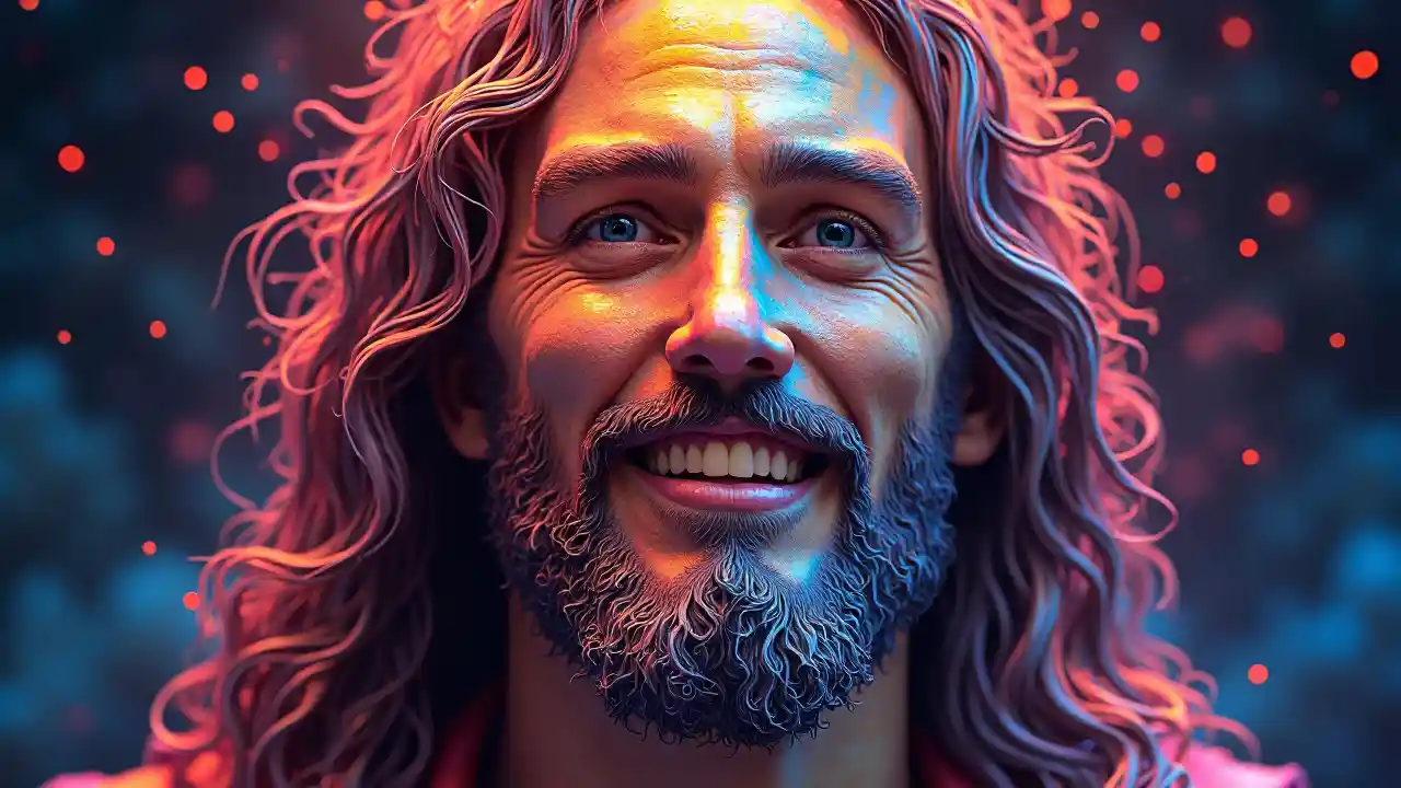 The Colorful Fractal Face of Jesus Christ with Laser Eyes