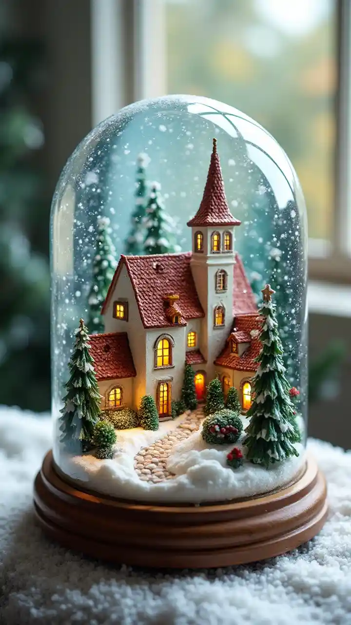 Charming French Village Inside a Snow Globe with Romanesque Church