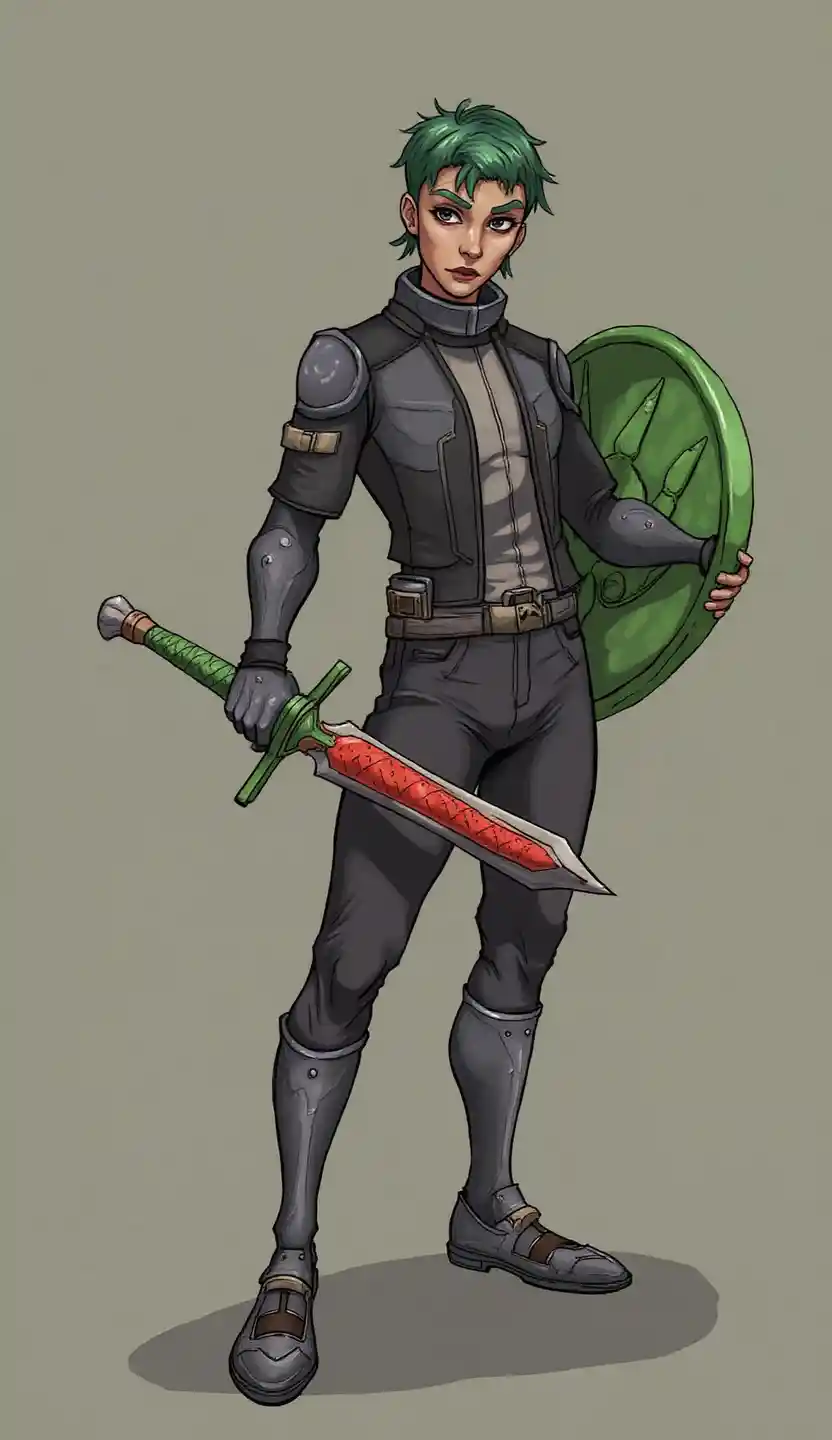 JacksonLethal fruits Weapon, (watermelon bombs:1.8), (holding a strawberry colored long sword, holding watermelon colored shield:1.8)