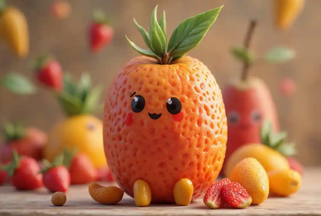 Jackmasterpiece, highest quality, high resolution, 4k,8k,(realistic, photo realistic: 1.5),「fruit weapon」,anthropomorphic fruit,cute fruit、cute fruit,"Fruity" pop