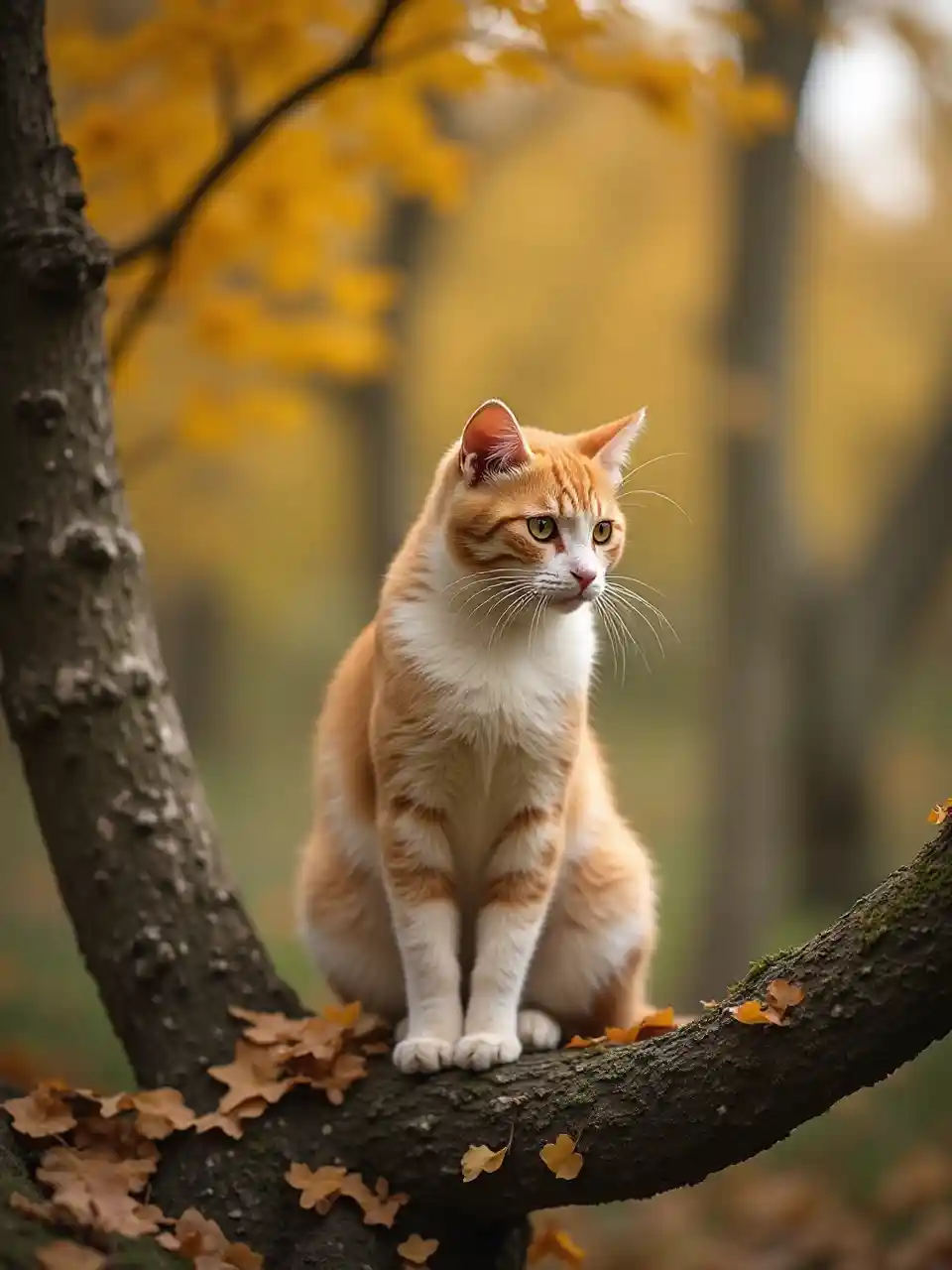 A Beauty of Nature: Orange and White Cat in Ginkgo Tree