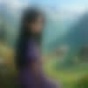 Girl. 18 years old. With dark brown eyes. 10 inches long black straight hair. 160 cm tall with a beautiful purple dress. He paints a picture in the mountains. Beautiful wooden houses can be seen in the mountains.He has a Caucasian appearance
