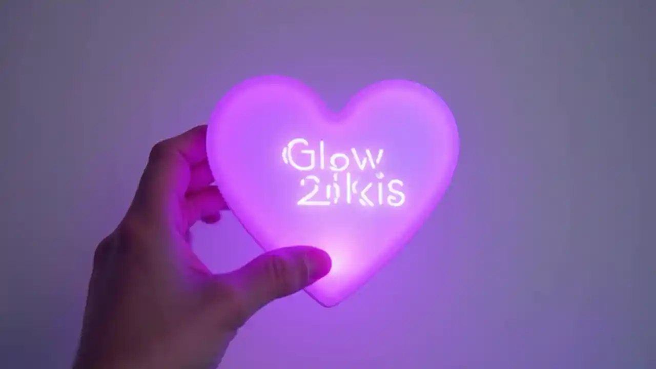 ElijahMake a light purple heart kpop lightstick labeled with a word Glow2Kiss in a white background