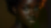 an eye contact of a Ugandan woman, (black skin:1.3), yellow spotlight, dark theme, lonely, Lavish, Matte black eyeshadow with a cut crease, metallic lipstick, golden ratio, Almond-shaped eyes, Freckles, indietronica, soft lighting, bokeh