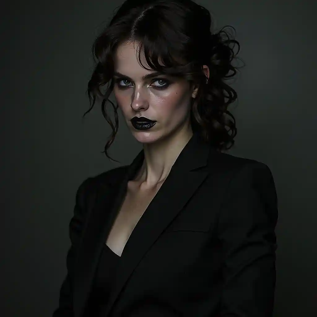 Davidalexandra daddario dressed black, sad face, black lipstick