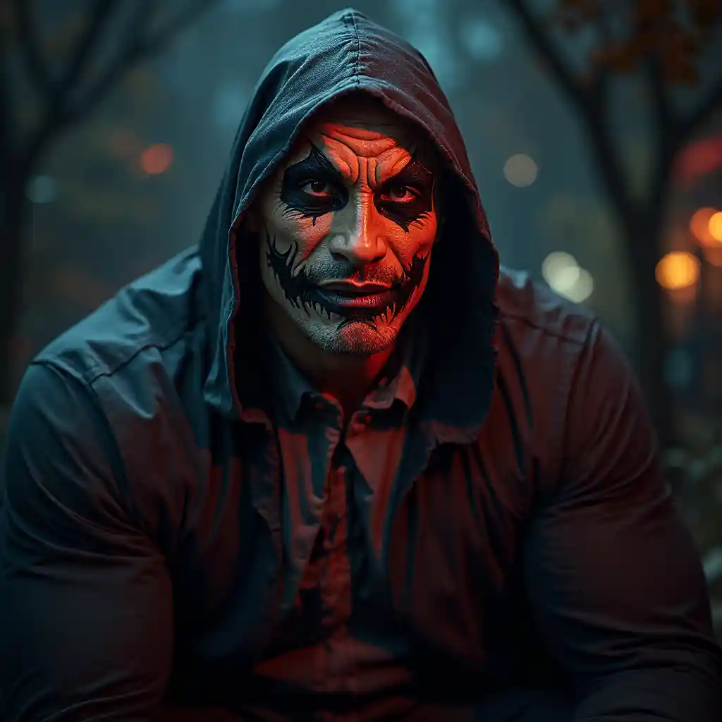 Dwayne Johnson wearing spooky Halloween costume,Sinister, Vivid saturated colors, Contrast color