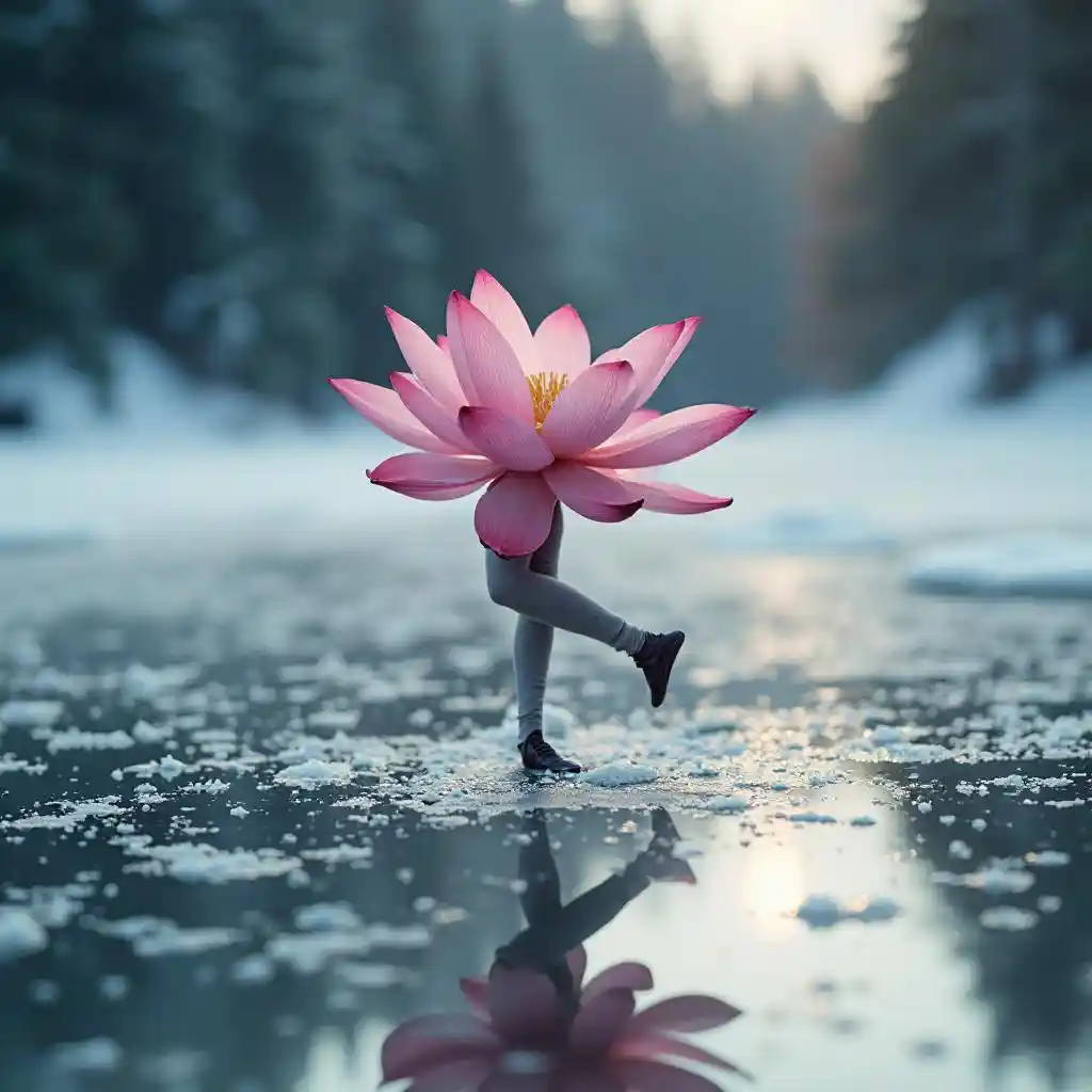 rubylynA lotus flower dancing with their legs over the ice reflecting lotus in ice