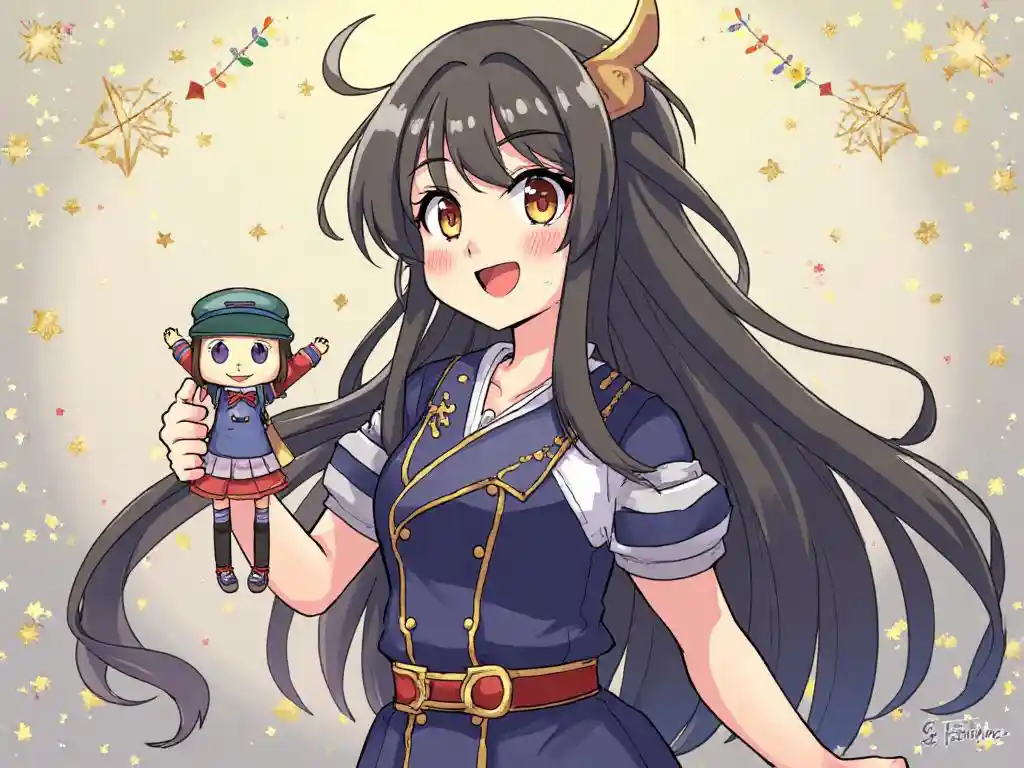VictoriaUse the reference image only by increasing its quality, without modifications and writing above Saber Marionette