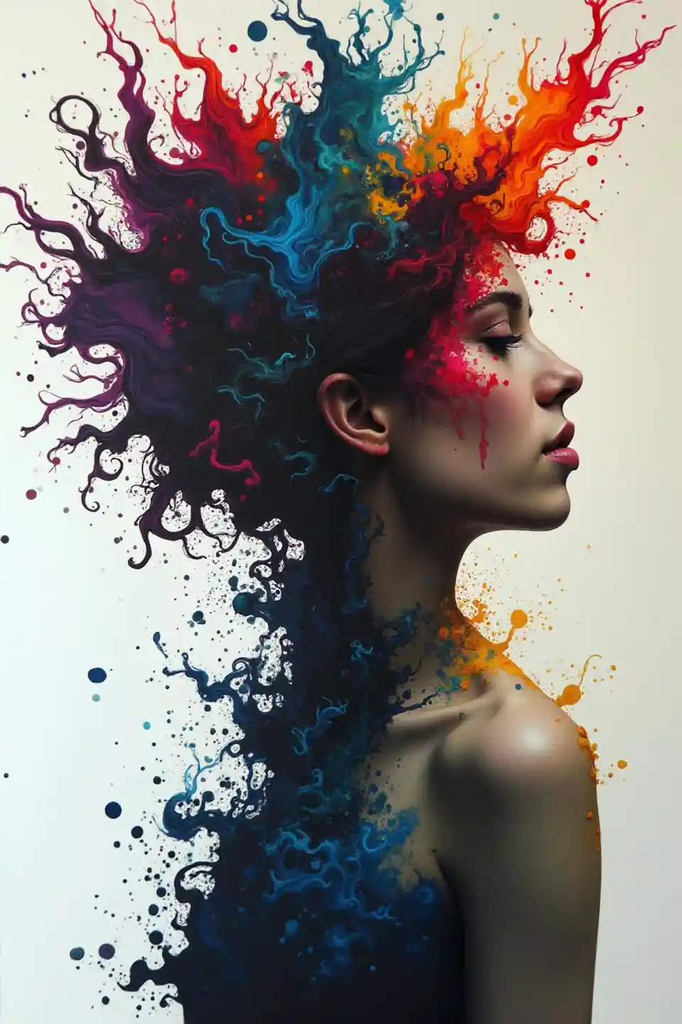 Colorful Woman in Black Ink Flow - 8k Masterpiece
