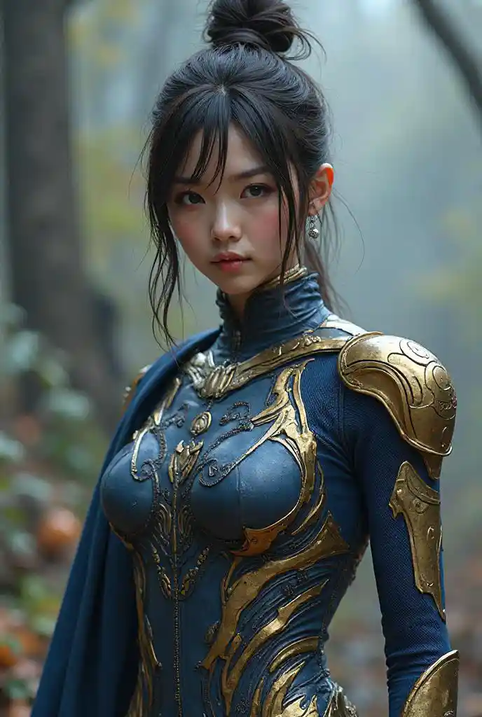 (photorealistic 1.4)、1 girl, (Iron Man: Blue Gold:1.2)Japanese woman wearing multiple layers all over her body( Orichalcon Heavy Metal :1.2)、Reproduce the intri