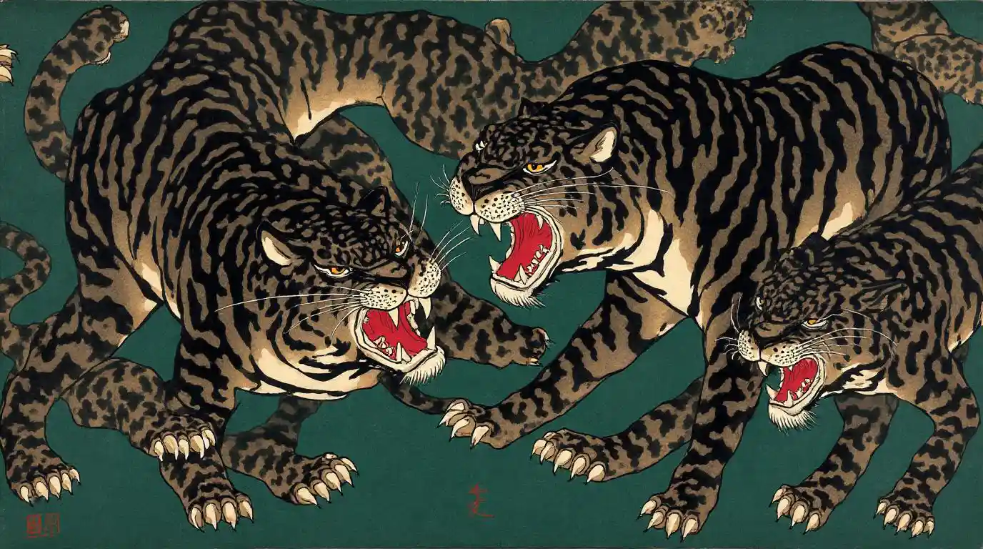 Ukiyo-e Tiger and Leopard Painting Close-Up