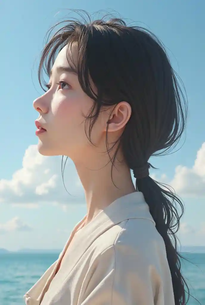 realistic, Beautiful Japanese Woman's Face, side map :1.37, Side Close-up :1.37, Profile Barking at the Sky:1.37, 非常にrealisticな写真, standing, perfect anatomy:1