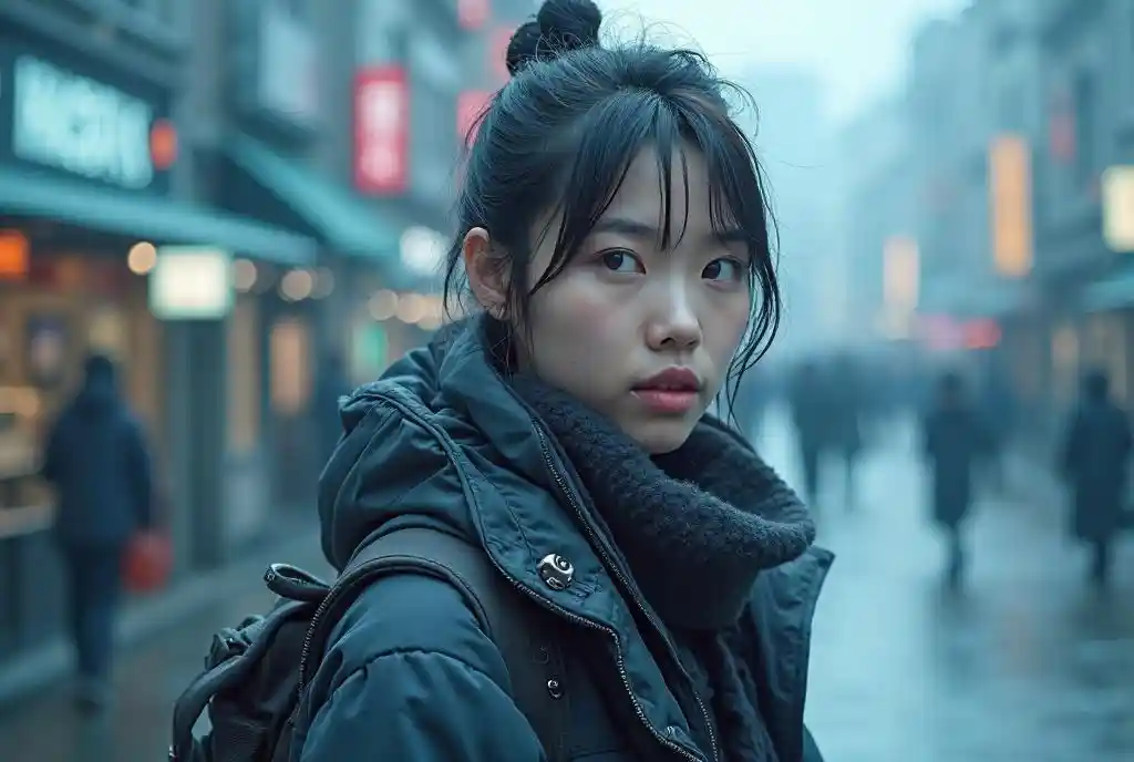 AdalynBreathtaking beauty, Ultra High Quality, 8k, beautiful Japanese female traveler, Blue-colored pictures, photorealistic, beautiful Japanese woman in thick clothe