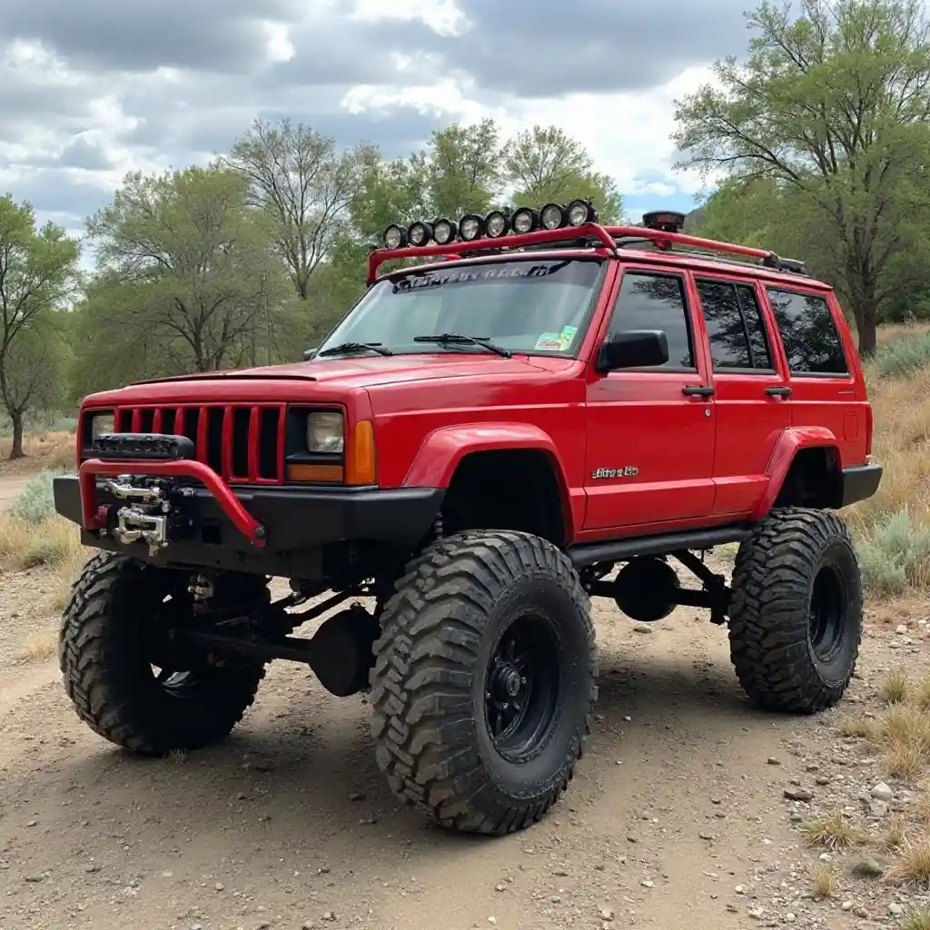 Red 1988 Jeep Comanche with Lifted Features