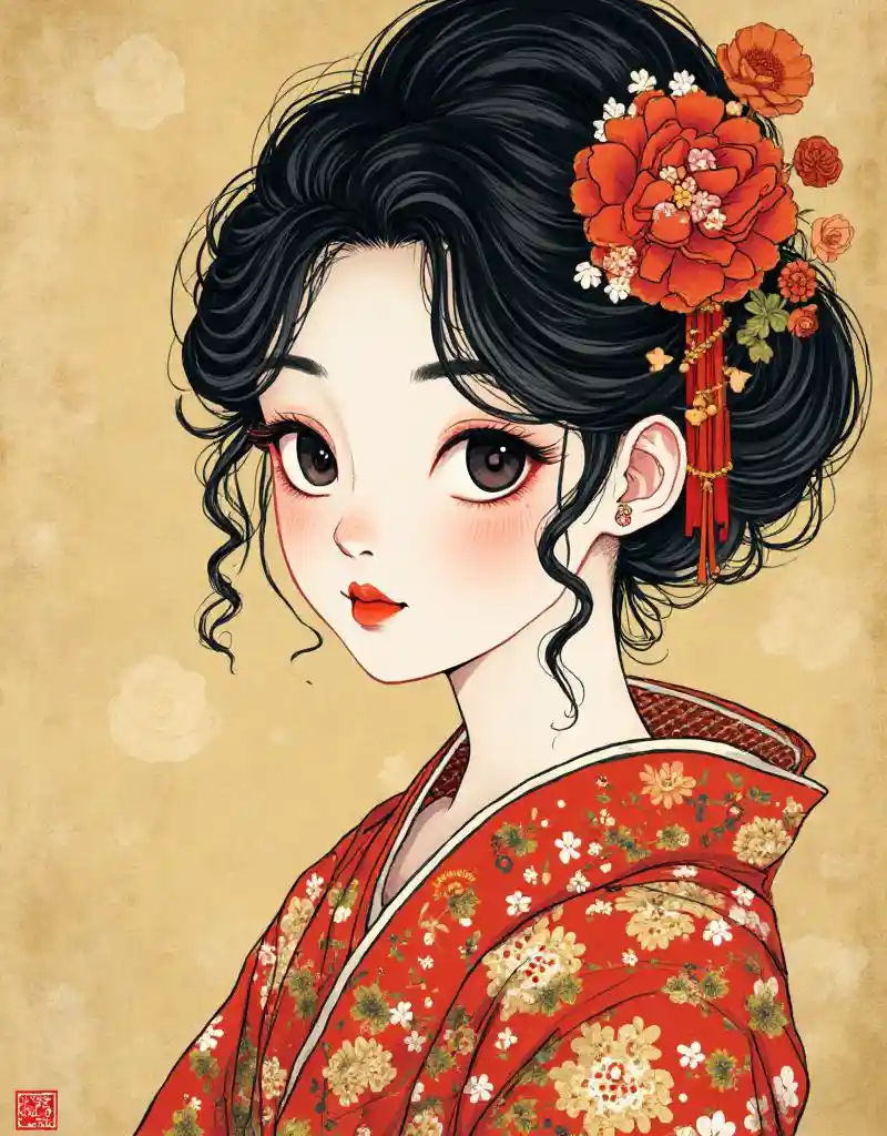 (Young Japanese Woman:1.5), detailed illustration, ideal composition, Breathtakingly Beautiful Art , Detailed Line Art, super quality, Gustav Klimt's detailed