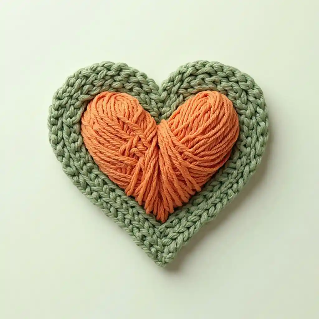 WilliamThe logo for the knitwear fair is soft green and orange colors, laconic, beautiful, , knitting thread, with the shape of heart minimalistic no background