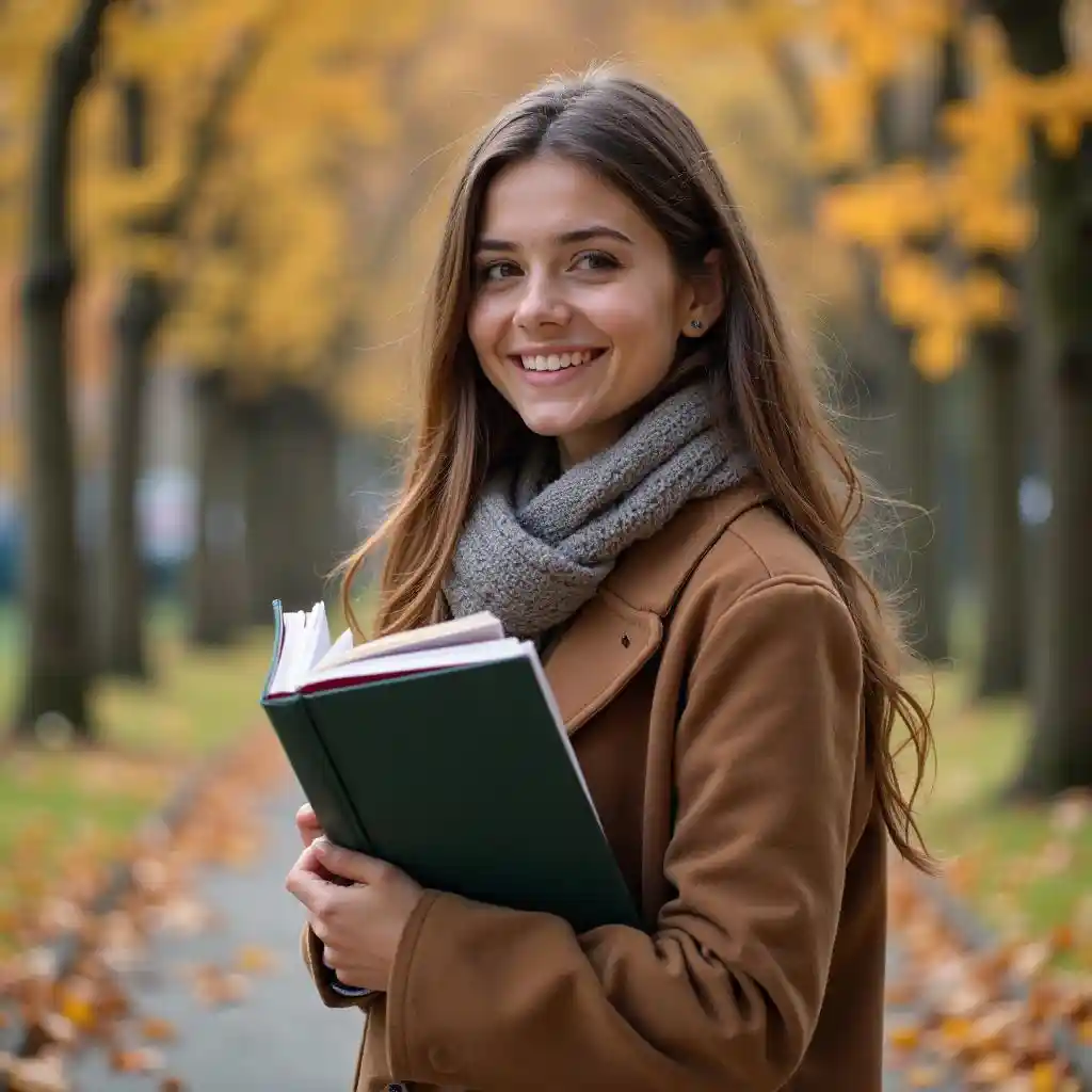 WilliamLaw student girl with law book in university in autumn coat Law book in his hand