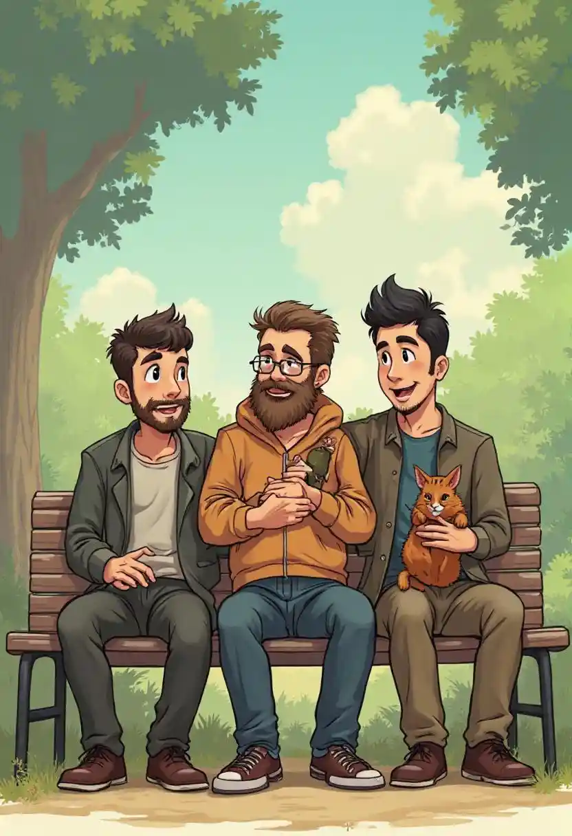 DavidThere are three men sitting on a bench with a cat, louvar art, louvar girl, by Kubisi art, cute art style , praise artstyle, Fanart oficial, louvar portrait, C