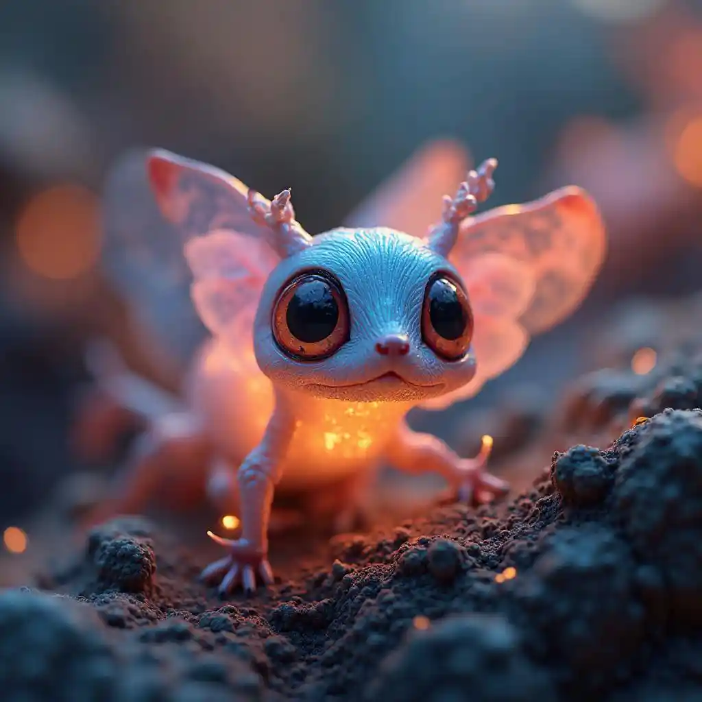 A highly detailed, creative close-up shot with a shallow depth of field, featuring a luminescent, vibrant, and intricate subject that appears to pop out of a dreamy, blurred background, evoking a sense of three-dimensionality and visual interest, with delicate, refined textures and patterns that invite the viewer to explore every nook and cranny, all rendered in a rich, saturated color palette with subtle gradients and highlights that accentuate the subject's cute and endearing qualities, with a sense of atmosphere and mood that is both enchanting and captivating, drawing the viewer in and refusing to let go