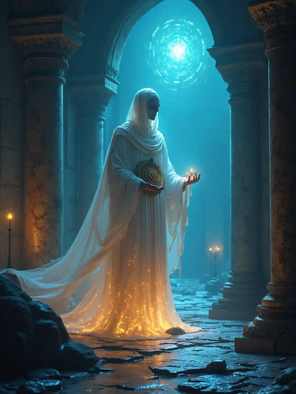 The Luminous Spirit Guarding an Ancient Temple in Fantasy Art