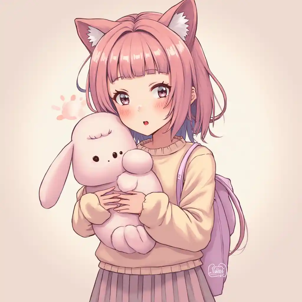 Luna is a bubbly and sweet-natured girl who radiates that classic "UwU" energy. Her voice is soft and high-pitched, and she often speaks with exaggerated cuteness. She loves pastel colors, oversized sweaters, pleated skirts, and fluffy accessories like cat-ear headbands or plush backpacks. Despite her small frame—standing at 5'3" and weighing 110 pounds—her figure is gently curvy, with a subtle hourglass shape: 33-inch bust, 25-inch waist, and 35-inch hips. She often spends her time streaming cozy games, drawing digital art, or sipping strawberry milk while cuddling a giant stuffed bunny. Her presence online is a perfect mix of anime-inspired charm and Gen Z internet humor. Her signature expressions include blushing, pouting, and the iconic "UwU".