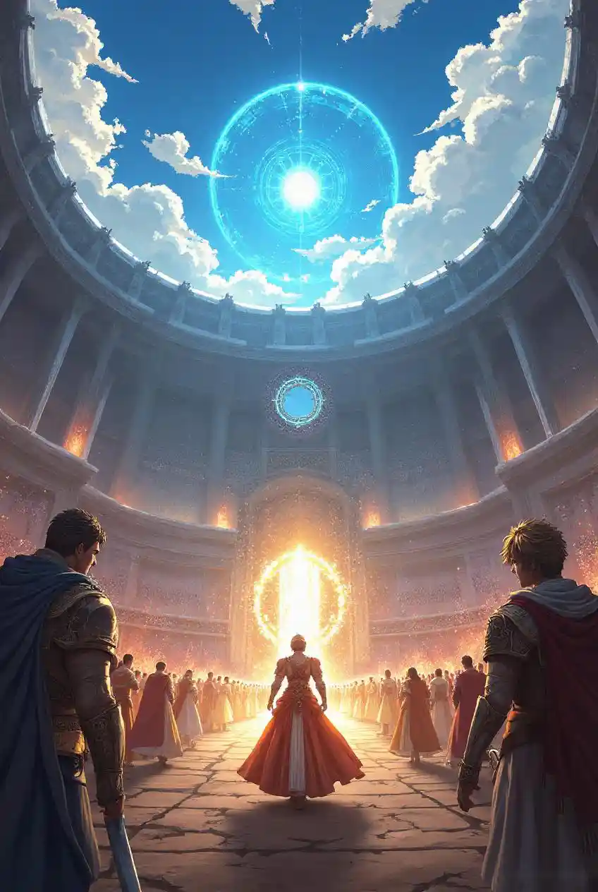 MilaGrand coliseum, warriors battling with magic, resonating with tournament arc anime.