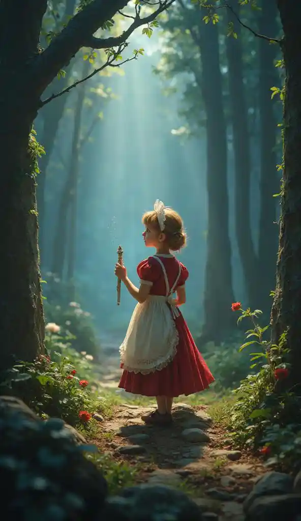Masterpiece, best quality, high resolution, 4K, 8K, A picture book about the adventures of a maid who becomes dwarfed by a magical light,