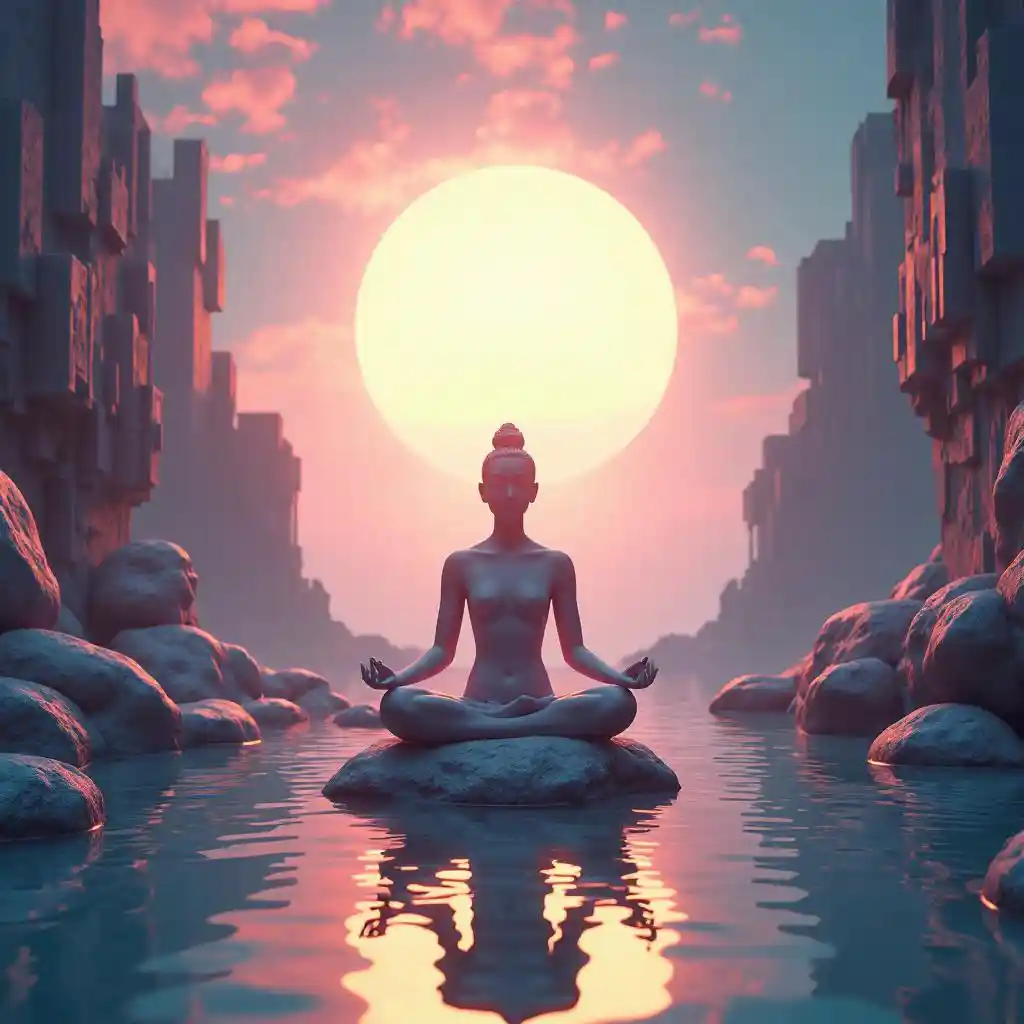 PenelopeMeditation location, futuristic, zen, vivid, 3D