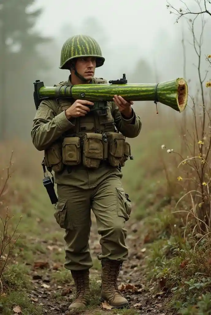 American soldiers,I have a rocket launcher made of melons,fruit weapon