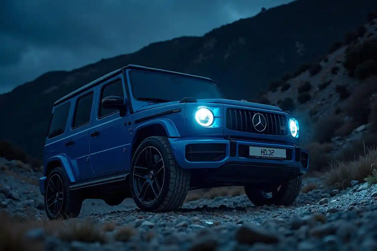 Blue Mercedes G-Class Night Shot on Rocky Hill