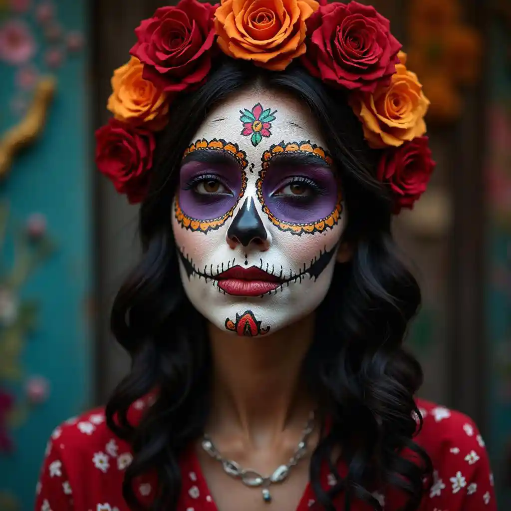 Woman with Mexican Night of the Dead makeup, Day of the Dead celebration in Mexico