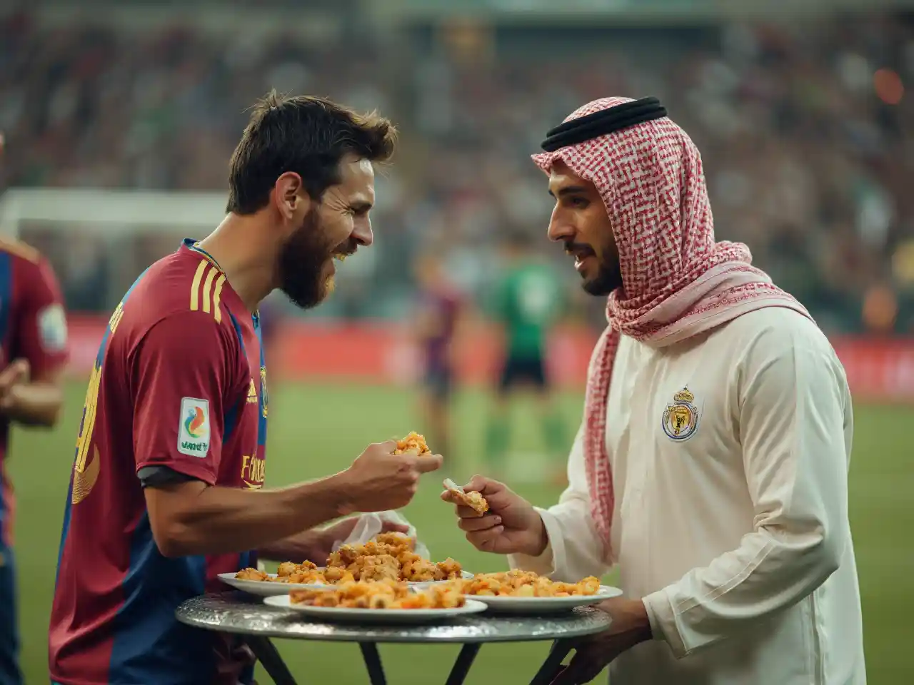 messi and ronaldo eating minsaf in saudia arabia