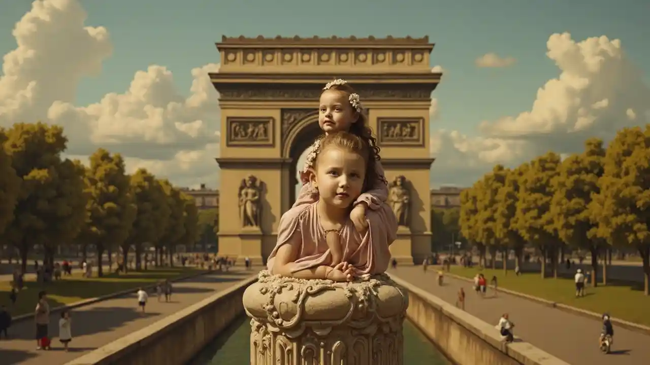ElijahA baby Mona Lisa standing on the arc de triomf