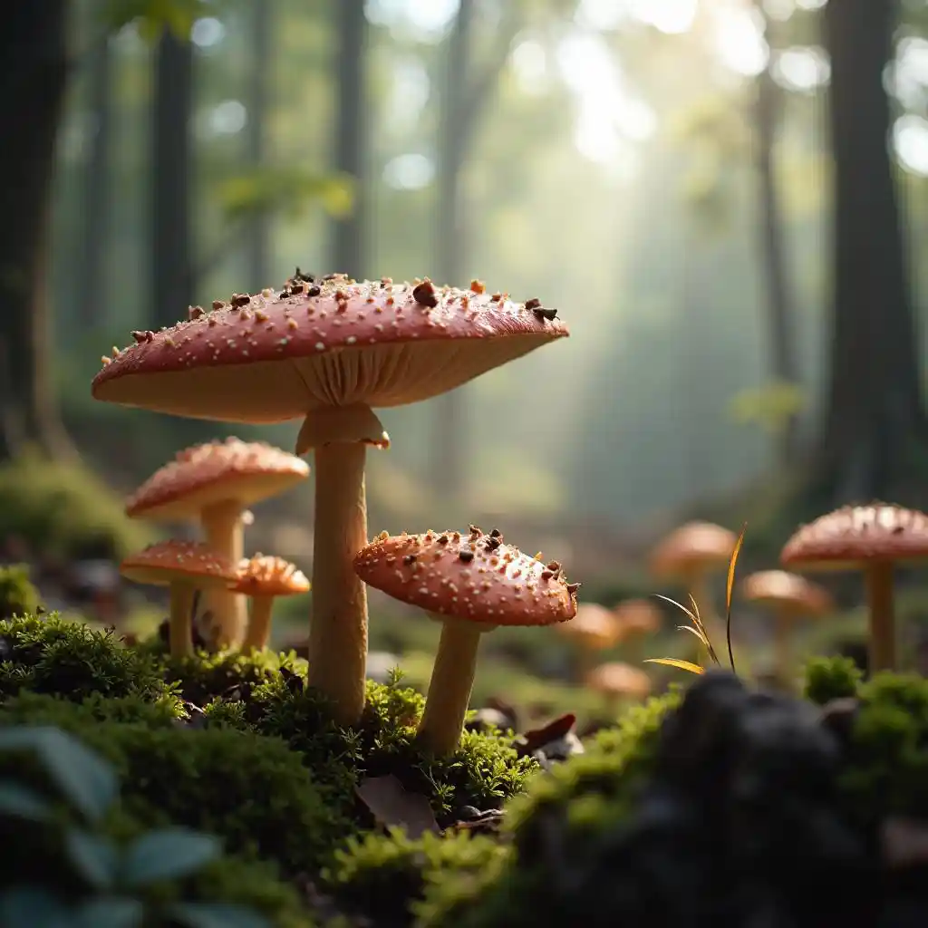 Beautiful world of mushrooms, seen in the foreground, With good lighting