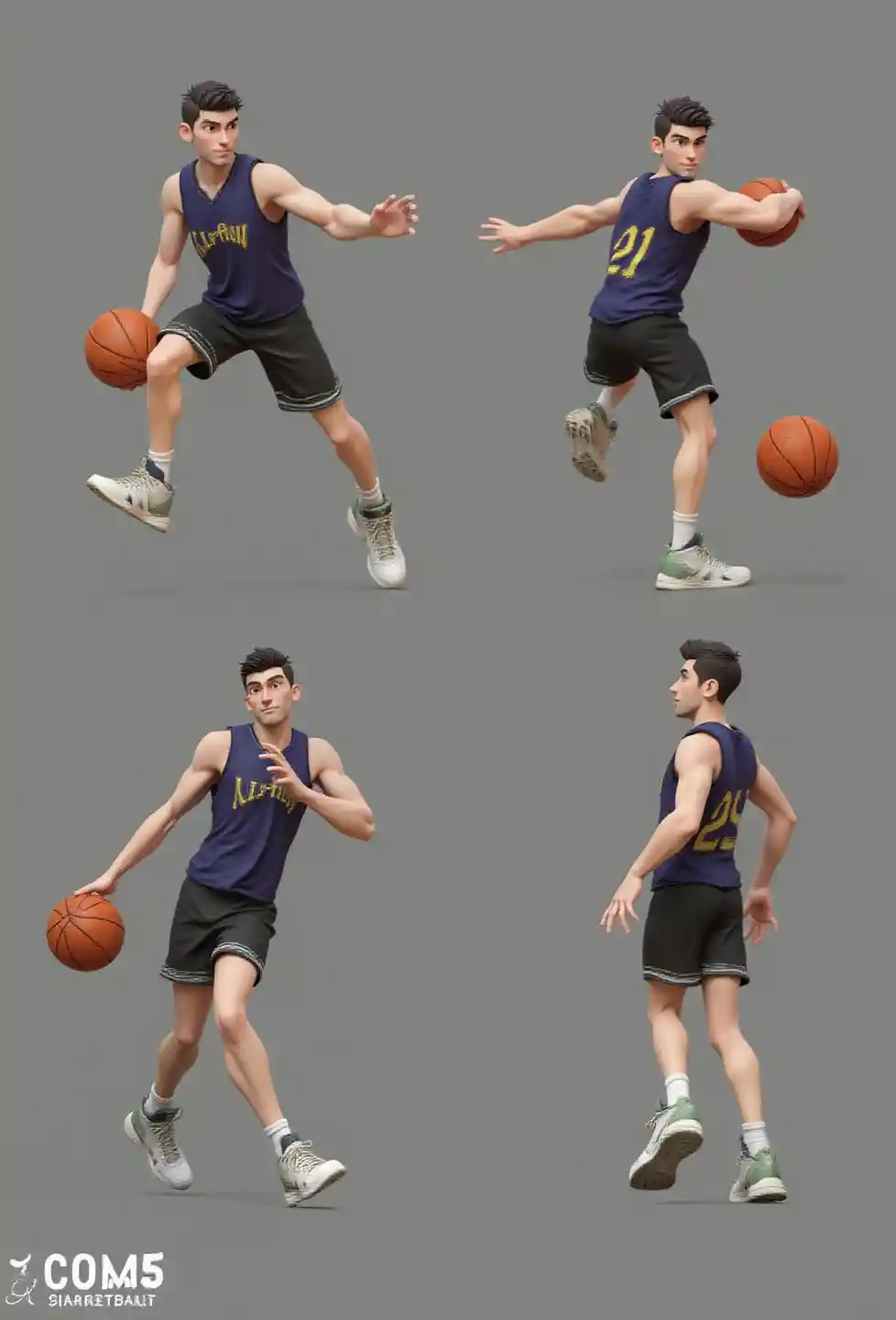 Animated NBA Basketball Player, Frenetic Basketball Games, Dynamic Poses, Impressive Dribbling Action, High Quality Animated Realistic 3D Rendering, sophisticat