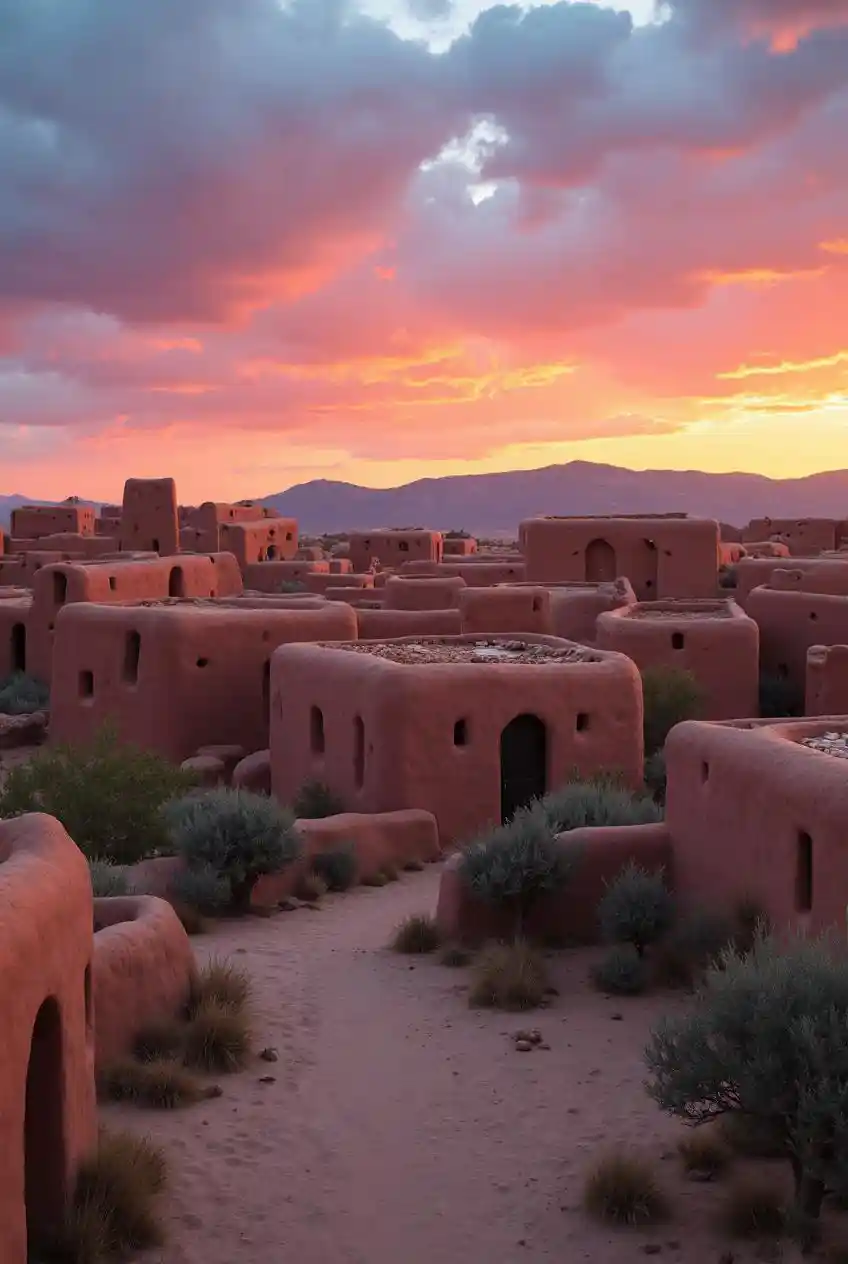 Adobe Pueblos in New Mexico Sunset Palette