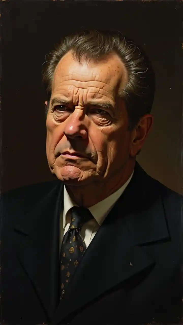 Portrait of Richard Nixon by Rembrandt Harmenszoon van Rijn, sad face, America, so sorry