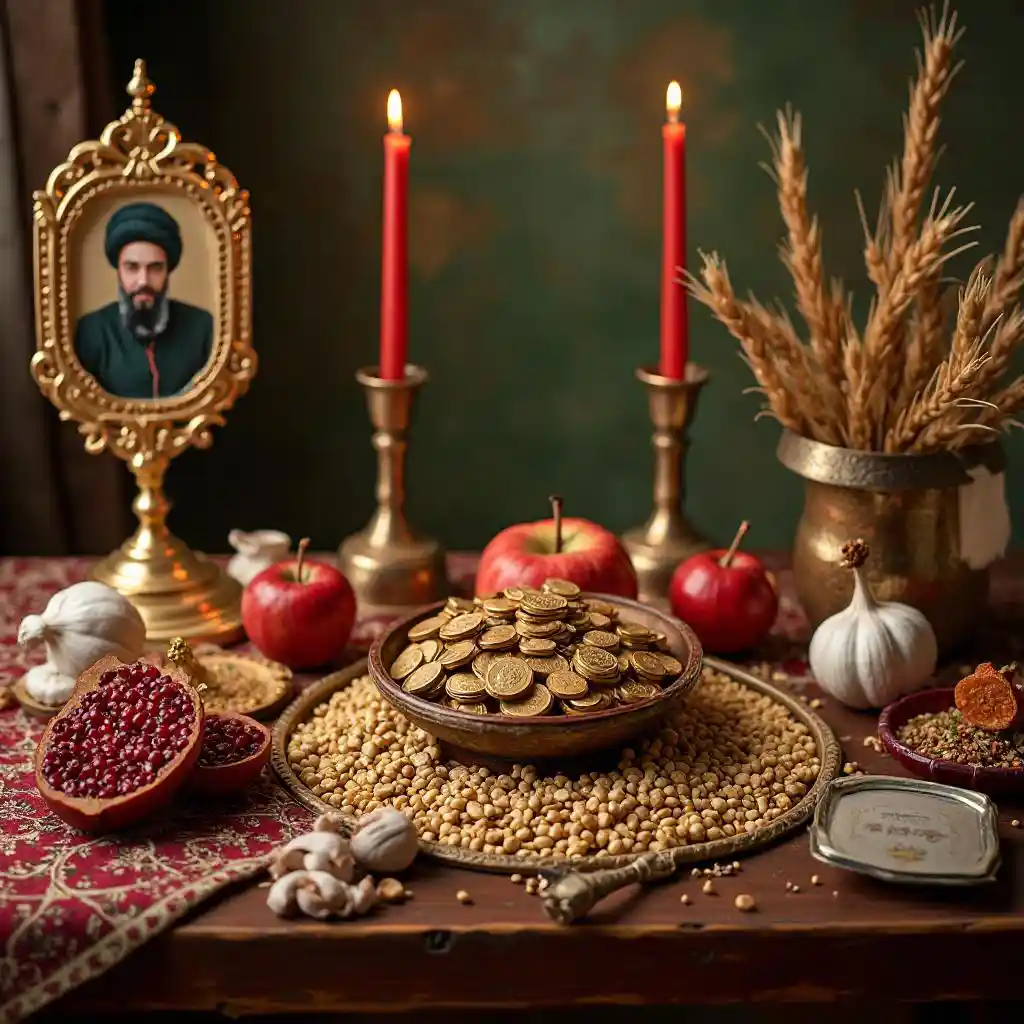 Iranian Nowruz Haft Sin Table with Imam Ali Frame