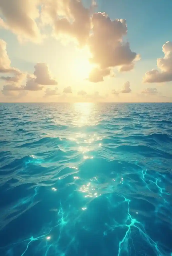 ((Color scheme with only blue and gold:1.5)), Beautiful Blue Ocean,Golden Sky ,Translucent Scenery, (holographic),Clear Blue Sea, shining golden aura ,Golden L