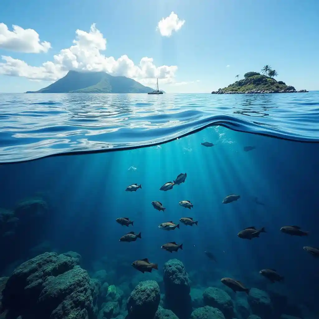 ocean showing all the marine life, a lot of fish of Santa Catarina, in the background showing 2 islands