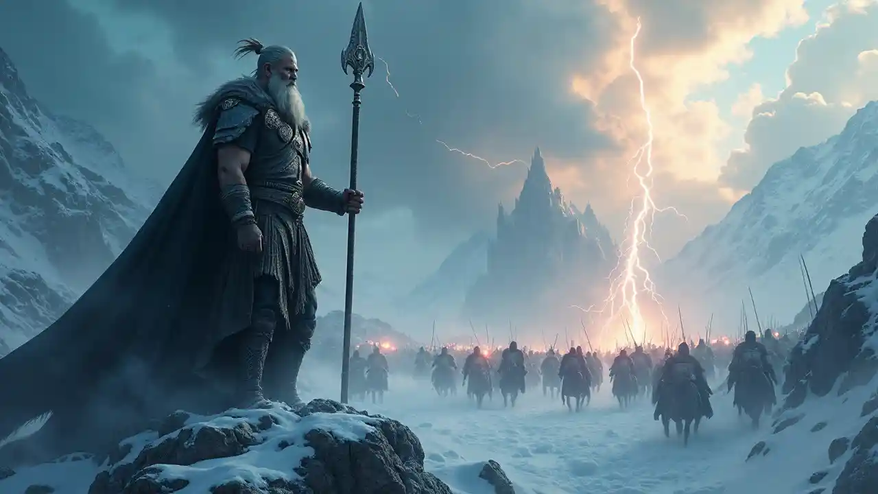 Epic High-Fantasy Battle of Odin Against the Frost Giants