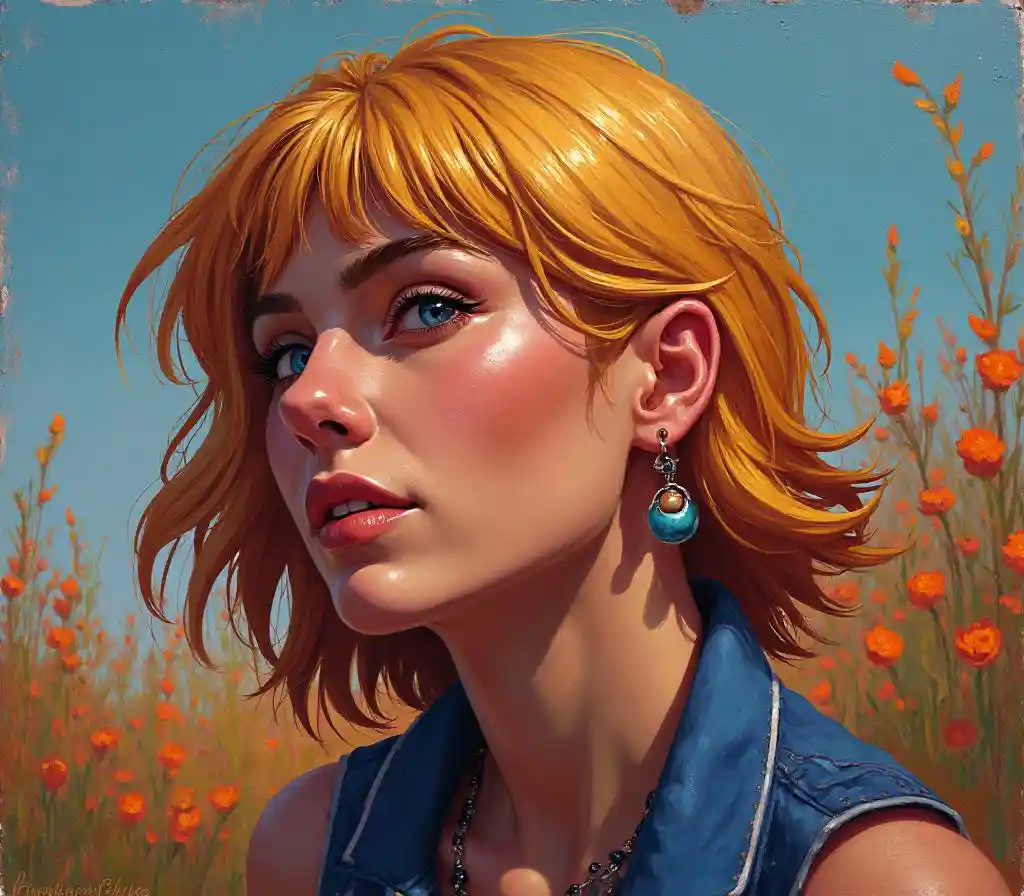 (best quality, high resolution, ultra Detailed, character created by Karol Baku and Pino Denis :1.37), portraits, medium:Oil paintings, of bright colors, excit