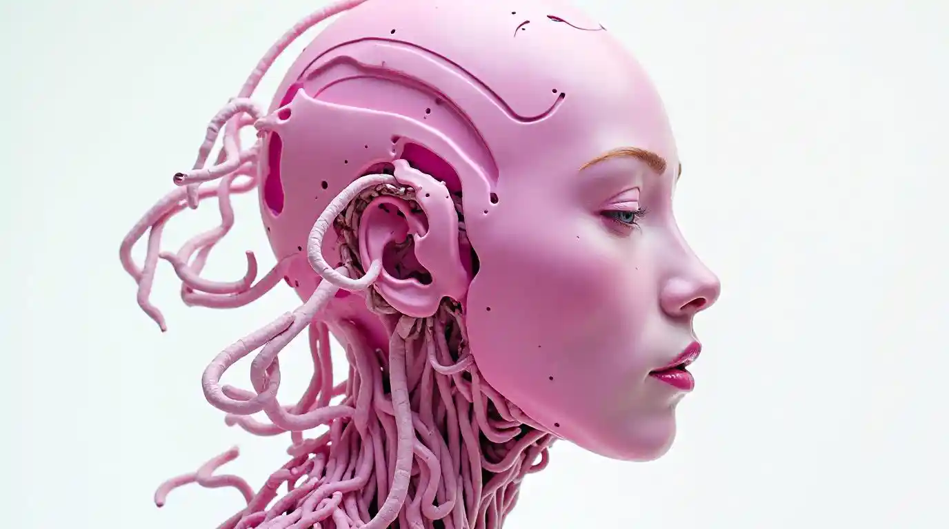 Pink Cyborg with Human Face Studio Shot
