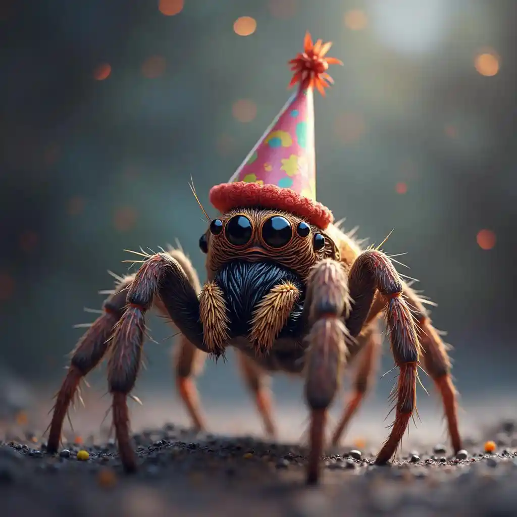 BenjaminThis is a digital art work of a jumping spider wearing a party hat